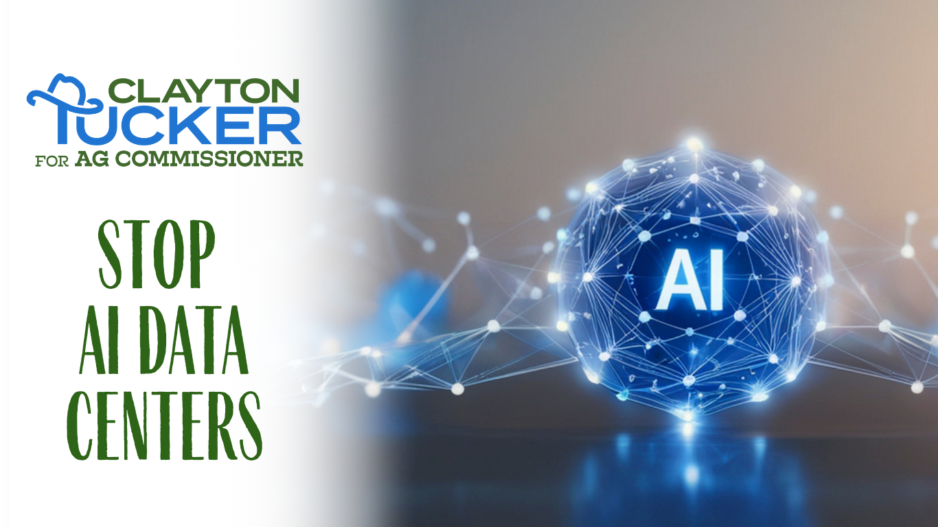 The TX Ag Commissioner can stop, or at the very least buy time for locals and other officials to find different ways to stop, these irresponsible AI data centers from causing mass water/power inflation. On Day 1 of the job, Clayton will issue "Ag Impact Studies" to stop irresponsible AI data centers from messing with Texas.